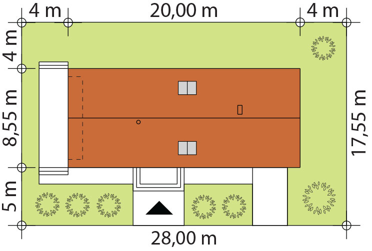 | Minimalna szerokość działki | 28 m |
