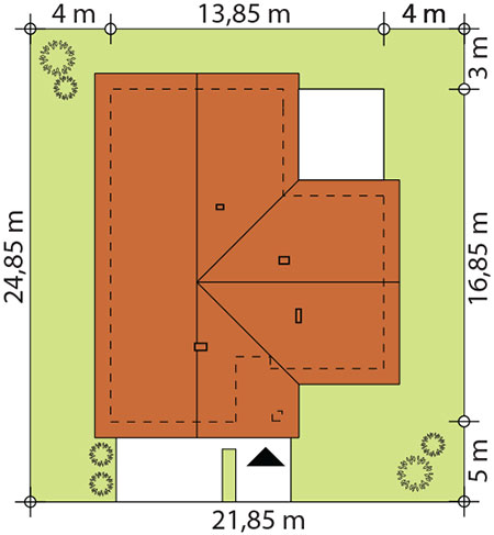 | Wysokość kalenicyMaksymalna wysokość budynku mierzona od poziomu terenu przy wejściu do najwyżej położonego punktu dachu. | 6.22 m |