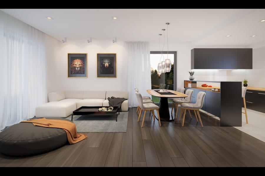 | Powierzchnia użytkowaDla domów parterowych: Suma powierzchni użytkowych wszystkich pomieszczeń bez garażu. Dla domów z poddaszem (dach spadzisty): Suma powierzchni użytkowych wszystkich pomieszczeń bez garażu i strychu. Na poddaszu, pod skosami dachu powierzchnię użytkową liczono wg zasady: - powyżej 2,2m wysokości pomieszczenia powierzchnia liczona w 100%, - pomiędzy 1,4m a 2,2m w 50%, - poniżej 1,4m powierzchnia nie jest brana pod uwagę. | 134.82 m² |