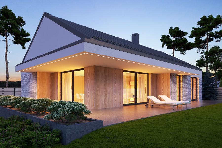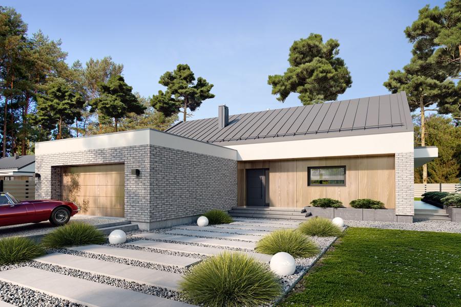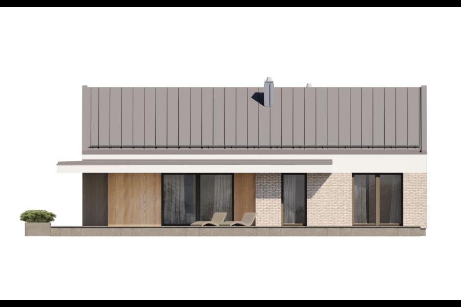 Nori 2 to parterowy dom jednorodzinny, łączący nowoczesny charakter elewacji z prostym, klasycznym układem pomieszczeń. Jest to bardzo wygodny, prosty i funkcjonalny dom, który swoim pełnym programem zapewnia optymalny komfort 4-osobowej rodzinie. Przestronna część dzienna to duży salon z jadalnią otwierający się na ogród poprzez ogromne przeszklenie, kuchnia ze spiżarnią oraz wc. Atutem projektu jest duży, zadaszony taras. Tak zaproponowany, ciekawy i przestronny układ pomieszczeń umożliwia szereg aranżacji. Część nocna to 3 wygodne sypialnie, z czego dwie posiadają wyjście na taras oraz przestronna łazienka i pralnia. W domu zaprojektowano dużą kotłownię dostępną z wiatrołapu, której parametry pozwalają na montaż kotła na każdy rodzaj paliwa, w tym na paliwo stałe oraz dwustanowiskowy garaż. Ten optymalny i ciekawy program funkcjonalny został ujęty w prostej bryle, przykrytej dwuspadowym, bezokapowym dachem. Atutem projektu jest jego prostota zarówno w układzie pomieszczeń jak i w rozwiązaniach elewacji, gdzie elegancki, nowoczesny styl osiągnięto poprzez klasyczne, proste ale szlachetne materiały oraz subtelny detal.