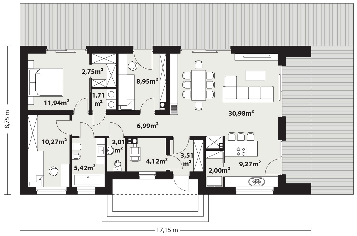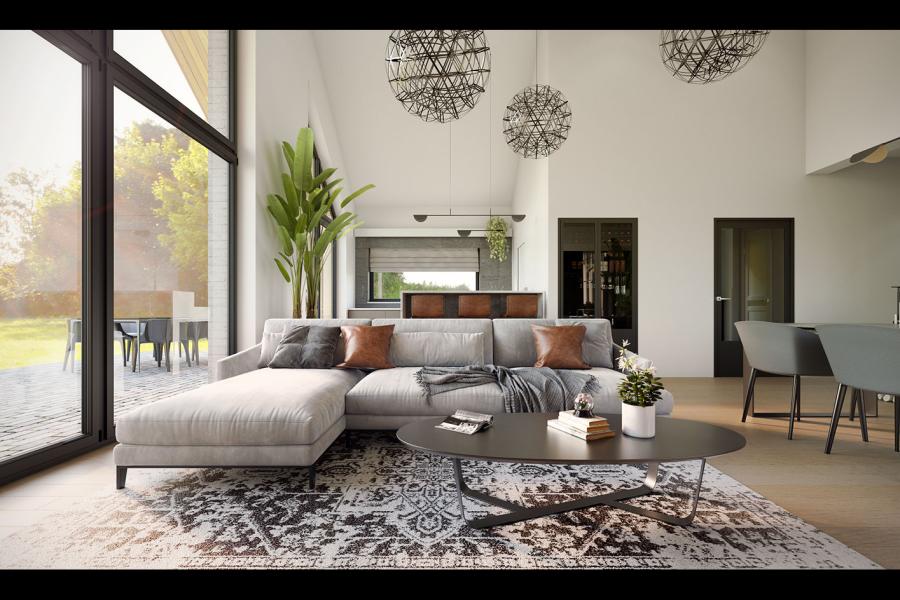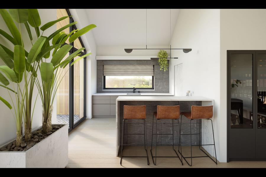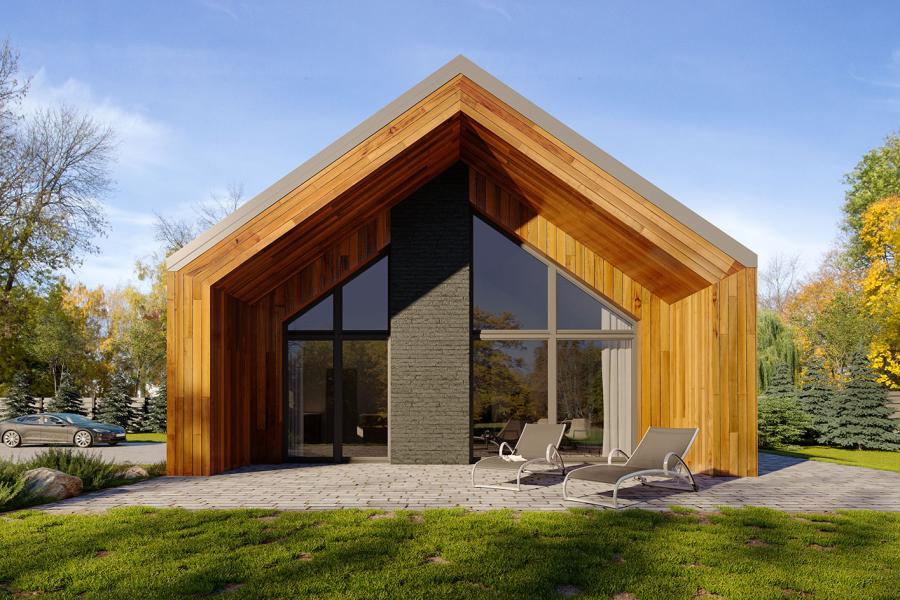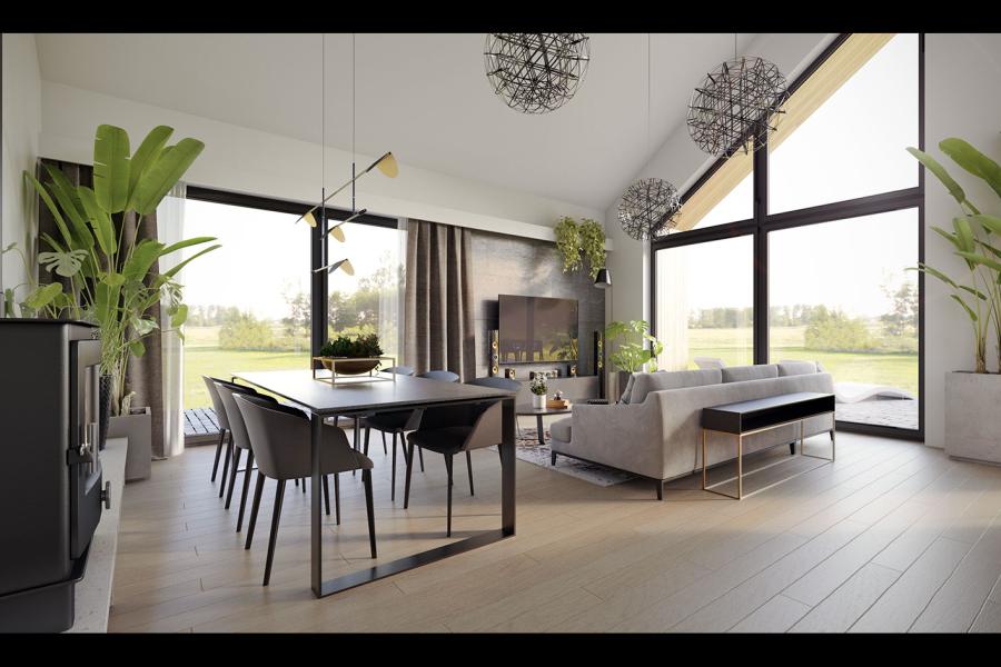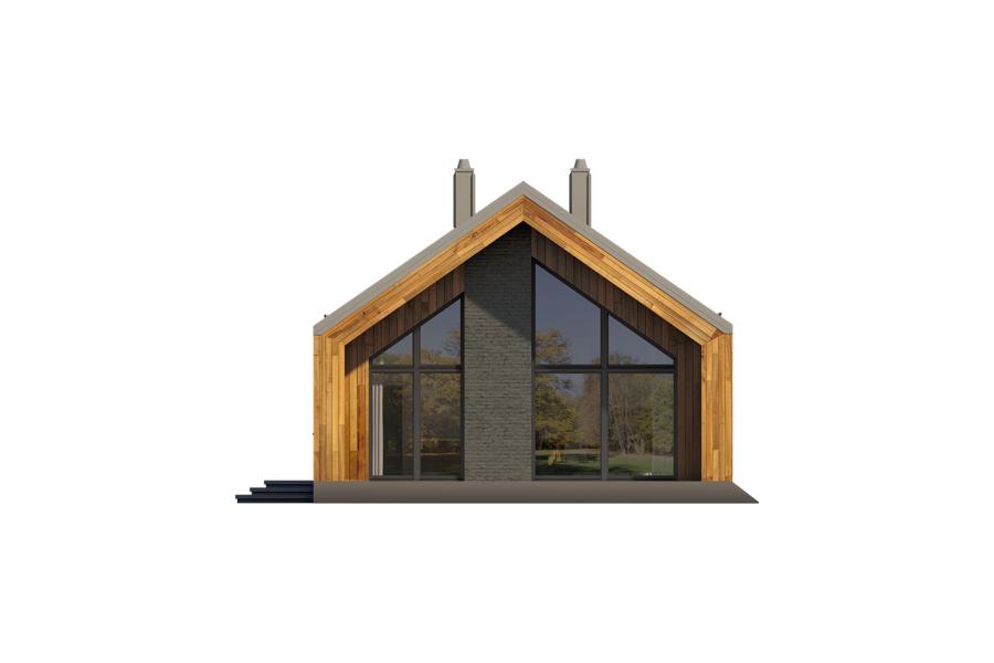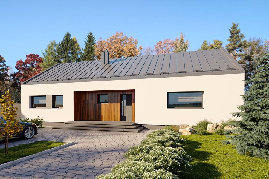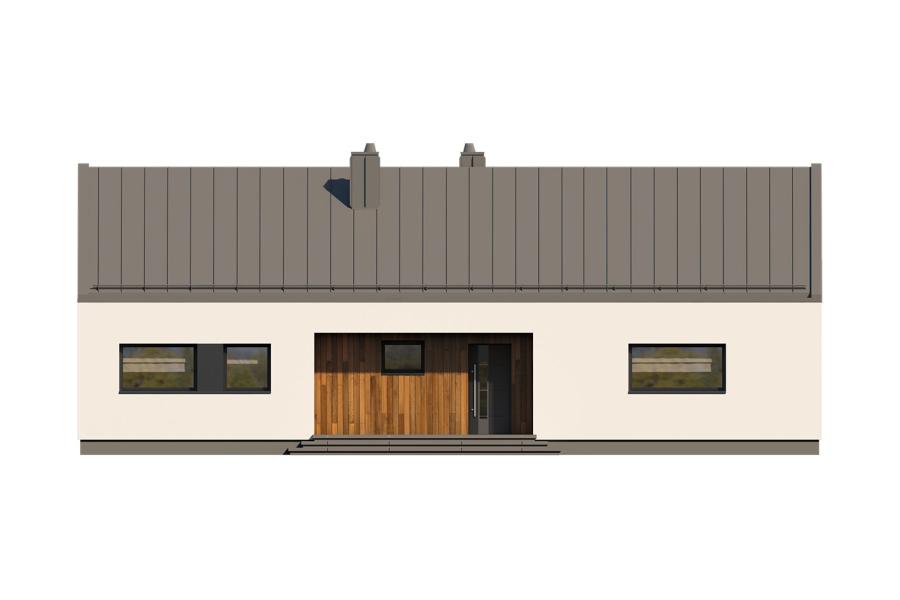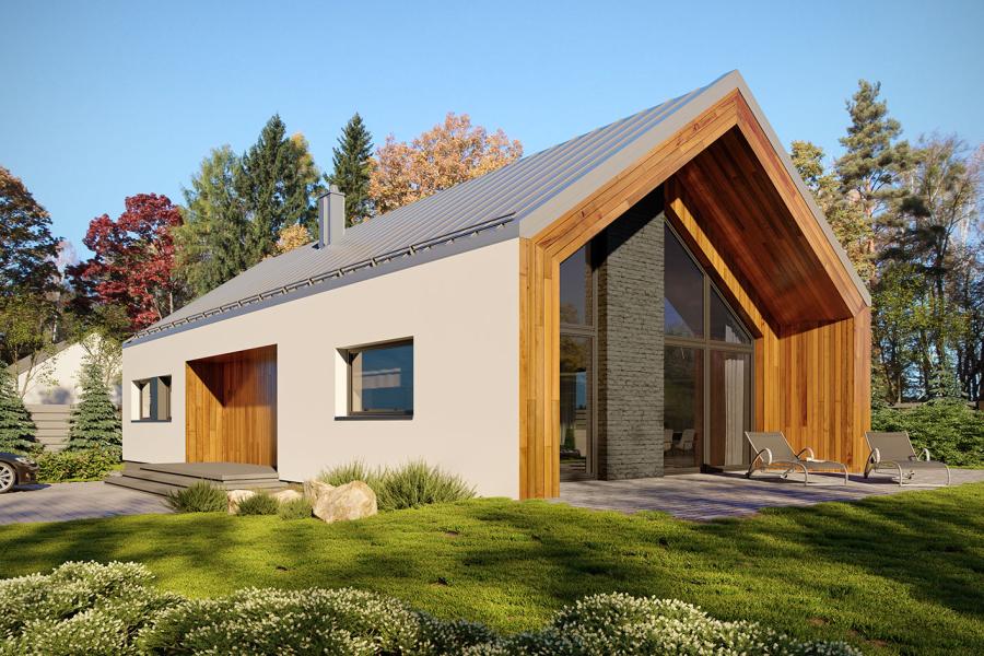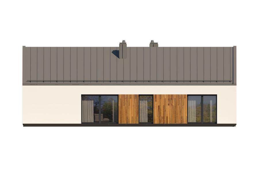 Piko to parterowy dom jednorodzinny w stylu nowoczesnej stodoły, łączący nowoczesny charakter elewacji z prostym, klasycznym układem pomieszczeń. Jest to bardzo wygodny, prosty i funkcjonalny dom, który swoim pełnym programem zapewnia optymalny komfort 4-osobowej rodzinie. Przestronna część dzienna to duży salon z jadalnią otwierający się na ogród poprzez ogromne przeszklenie oraz kuchnia ze spiżarnią. Atutem projektu jest duży, częściowo zadaszony taras dostępny z salonu, kuchni i jadalni. Tak zaproponowany, ciekawy i przestronny układ pomieszczeń umożliwia szereg aranżacji. Część nocna to 3 wygodne sypialnie, z czego dwie posiadają wyjście na taras oraz łazienka i pralnia. W domu zaprojektowano kotłownię dostępną z wiatrołapu, której parametry pozwalają na montaż kotła na każdy rodzaj paliwa, w tym na paliwo stałe. Ten optymalny i ciekawy program funkcjonalny został ujęty w prostej bryle, przykrytej dwuspadowym, bezokapowym dachem.