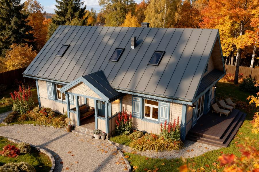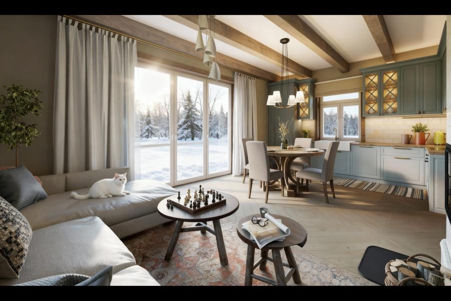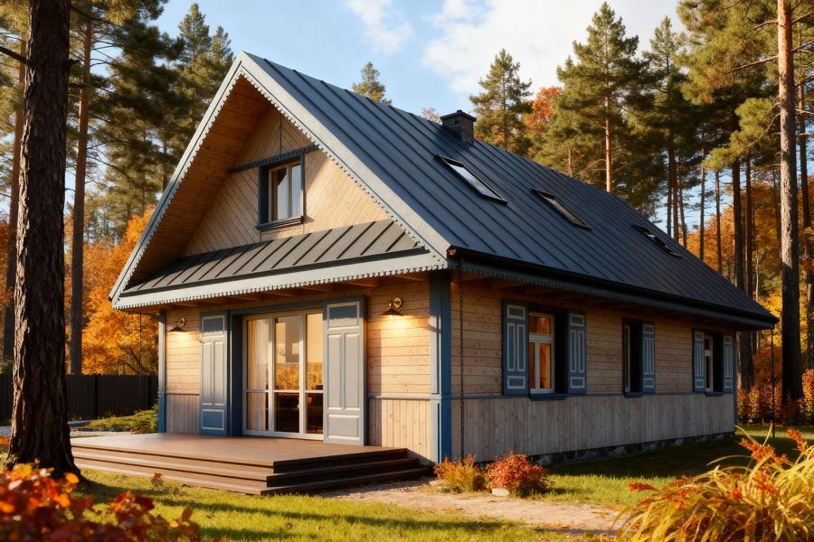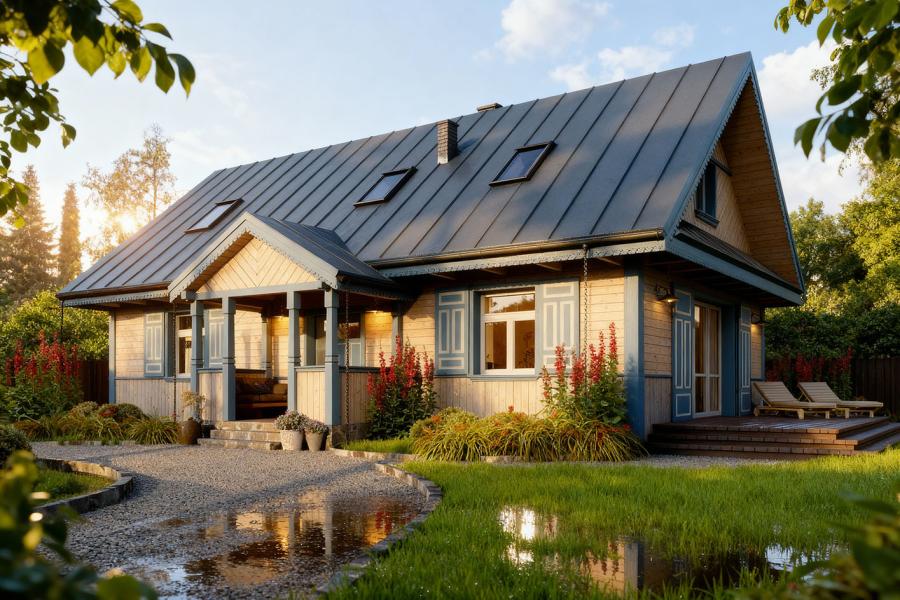 To dom, który wygląda, jakby stał tu od zawsze, ale technologicznie wyprzedza sąsiadów – idealny, by na ganku czytać książki i udawać, że Wi-Fi nie istnieje (choć w środku działa doskonale)