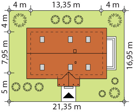 | Wysokość kalenicyMaksymalna wysokość budynku mierzona od poziomu terenu przy wejściu do najwyżej położonego punktu dachu. | 7.5 m |