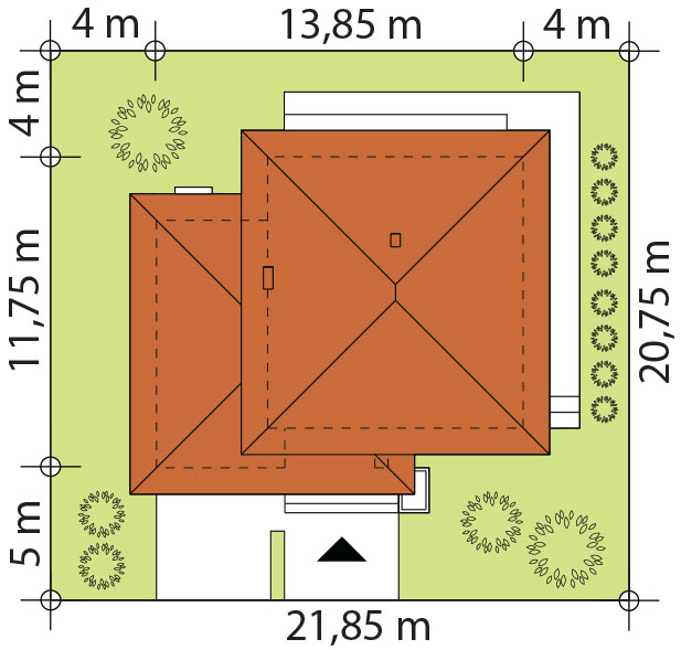 | Wysokość kalenicyMaksymalna wysokość budynku mierzona od poziomu terenu przy wejściu do najwyżej położonego punktu dachu. | 8.65 m |