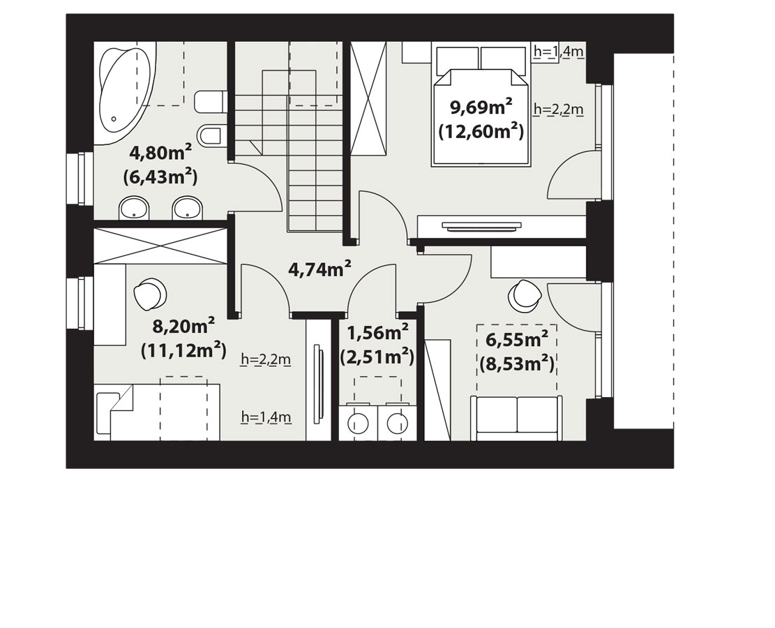 | Powierzchnia użytkowaDla domów parterowych: Suma powierzchni użytkowych wszystkich pomieszczeń bez garażu. Dla domów z poddaszem (dach spadzisty): Suma powierzchni użytkowych wszystkich pomieszczeń bez garażu i strychu. Na poddaszu, pod skosami dachu powierzchnię użytkową liczono wg zasady: - powyżej 2,2m wysokości pomieszczenia powierzchnia liczona w 100%, - pomiędzy 1,4m a 2,2m w 50%, - poniżej 1,4m powierzchnia nie jest brana pod uwagę. | 83.39 m² |